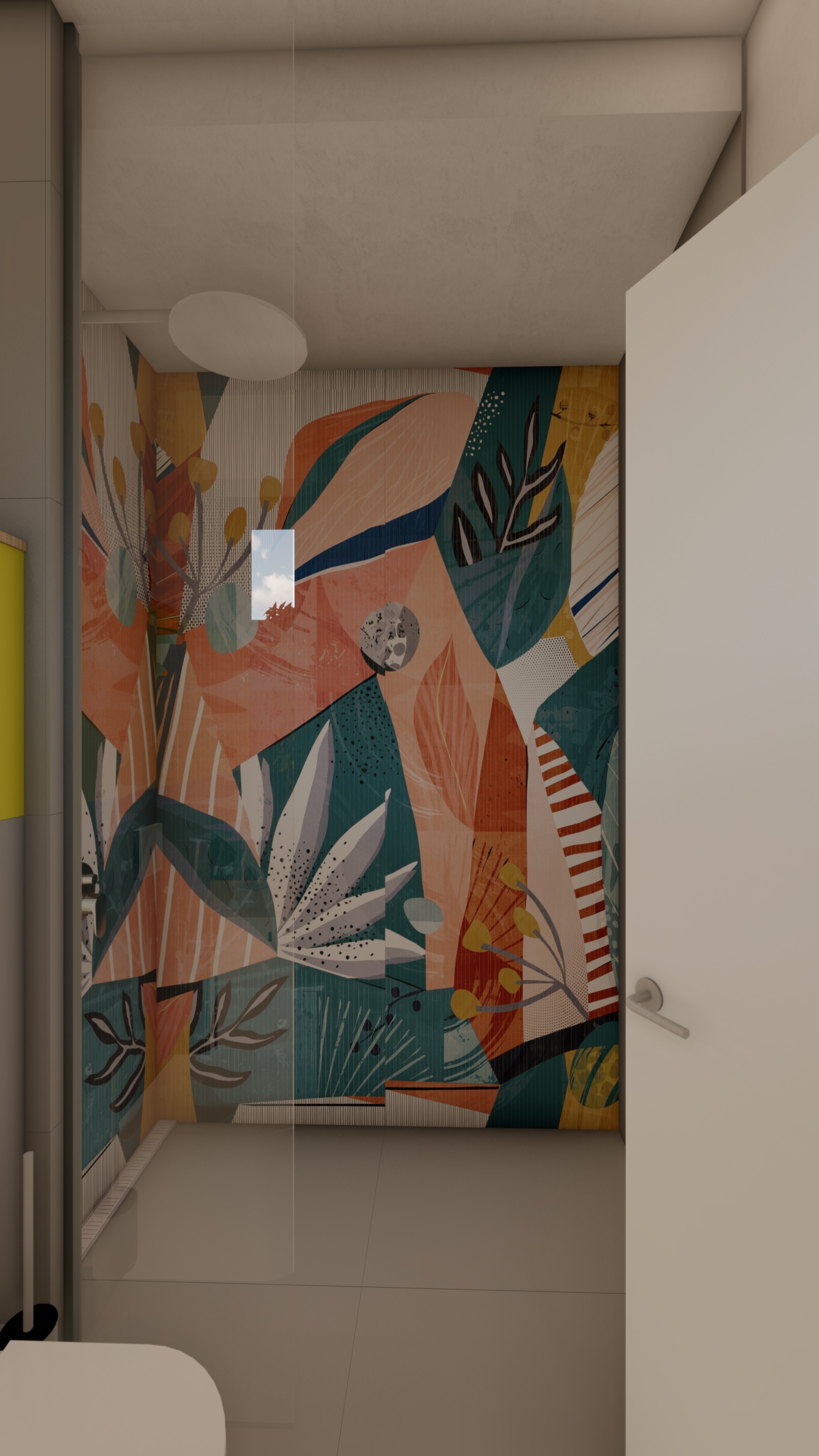 Vegetația a devenit personajul principal al designului, fiecare colț primind viață prin prezența plantelor - de la ierurile cățărătoare care îmbrățișează structurile din lemn la palmii majestici care punctează zonele de relaxare. Băile au căpătat personalitate prin fototapetul artistic abstract, unde culorile se întâlnesc într-o simfonie controverse ce face fiecare moment petrecut acolo să devină o experiență estetică. Mobilierul a fost ales pentru funcționalitate și durabilitate - linii curate, materiale naturale și design scandinav care să reziste testului timpului fără să obosească ochiul. Iluminatul natural devine protagonist prin ferestrele generoase, completat de corpuri de iluminat moderne care respectă principiile minimalismului funcțional, creând atmosfere diferite pentru fiecare moment al zilei și nevoile specifice ale fiecărei activități.