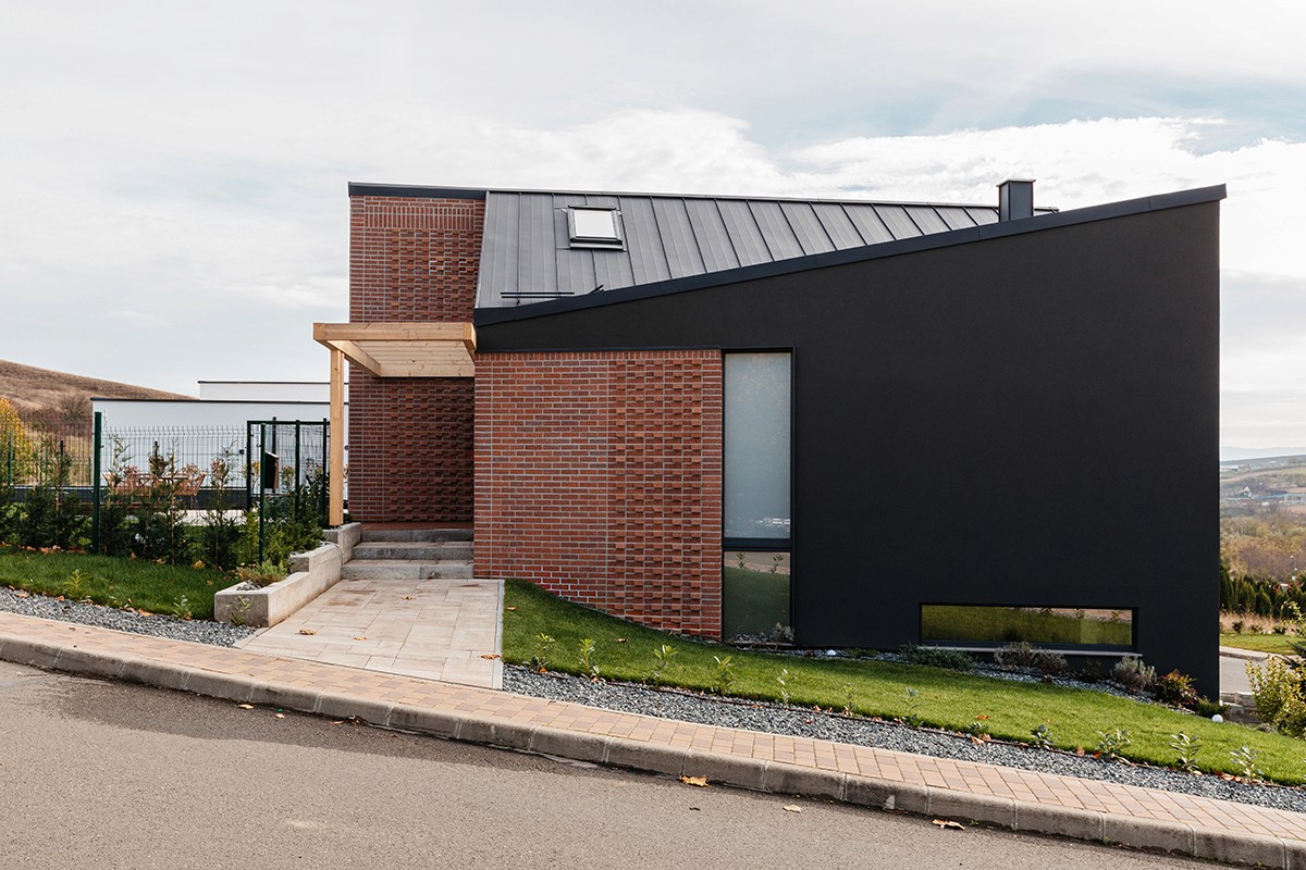 A venit cu o schiță frumoasă, insă nepotrivită pe terenul pe care îl avea cu soția. În urma analizelor de insorire, de teren și mai ales a dorințelor ambilor parteneri, a rezultat această casă cu un regim de înălțime interesant. Din spate zici că e casă parter, iar din față este casă cu etaj. În realitate locuința crește odată cu terenul și se dezvoltă organic.
